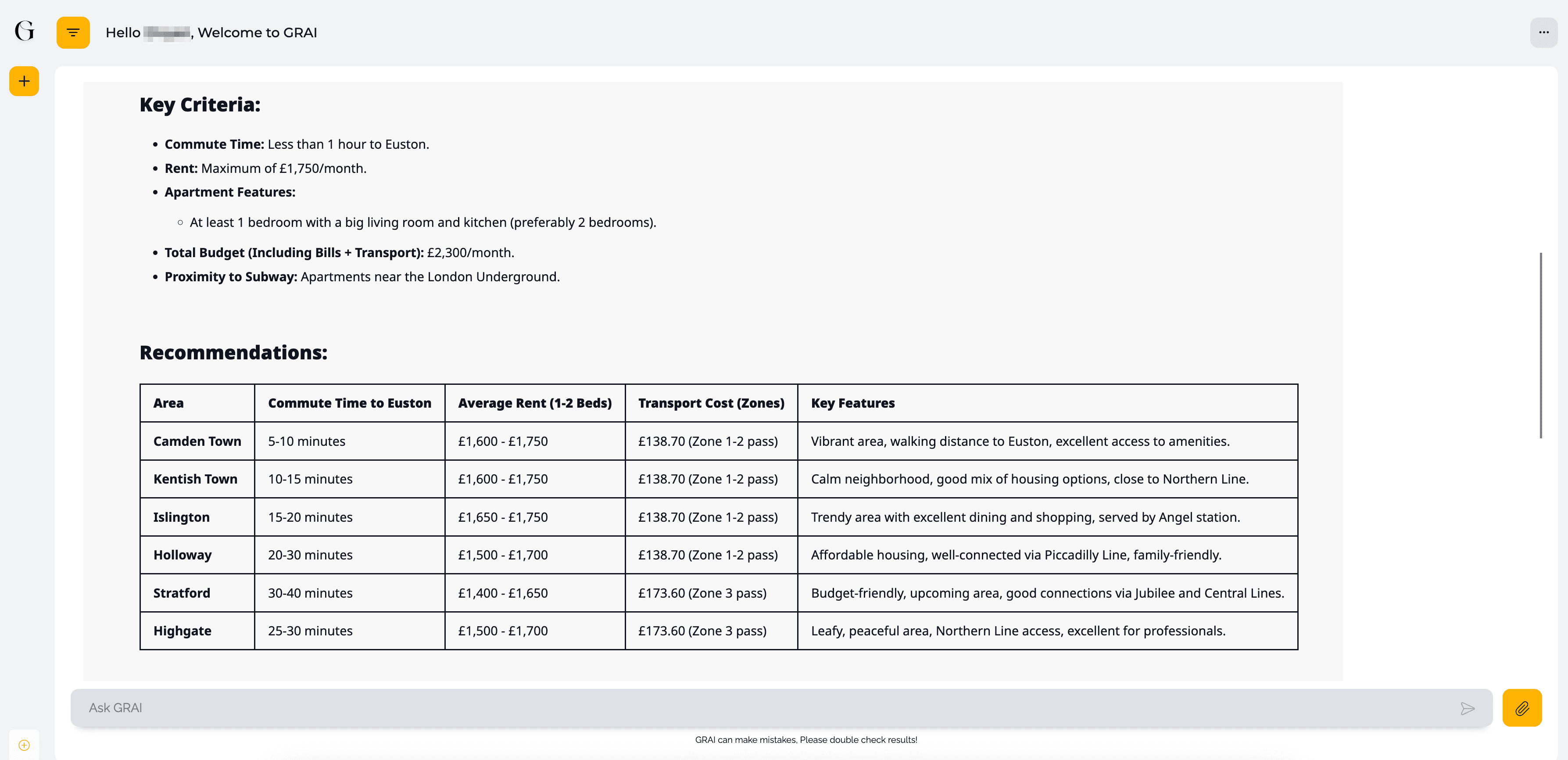 Recently, a tech influencer showcased how he used ManusAI to find an apartment in London near Euston Station within a £2,300 monthly budget. While ManusAI took ~10 minutes to generate results, we put GRAI to the test with the same challenge - and the results were game-changing.